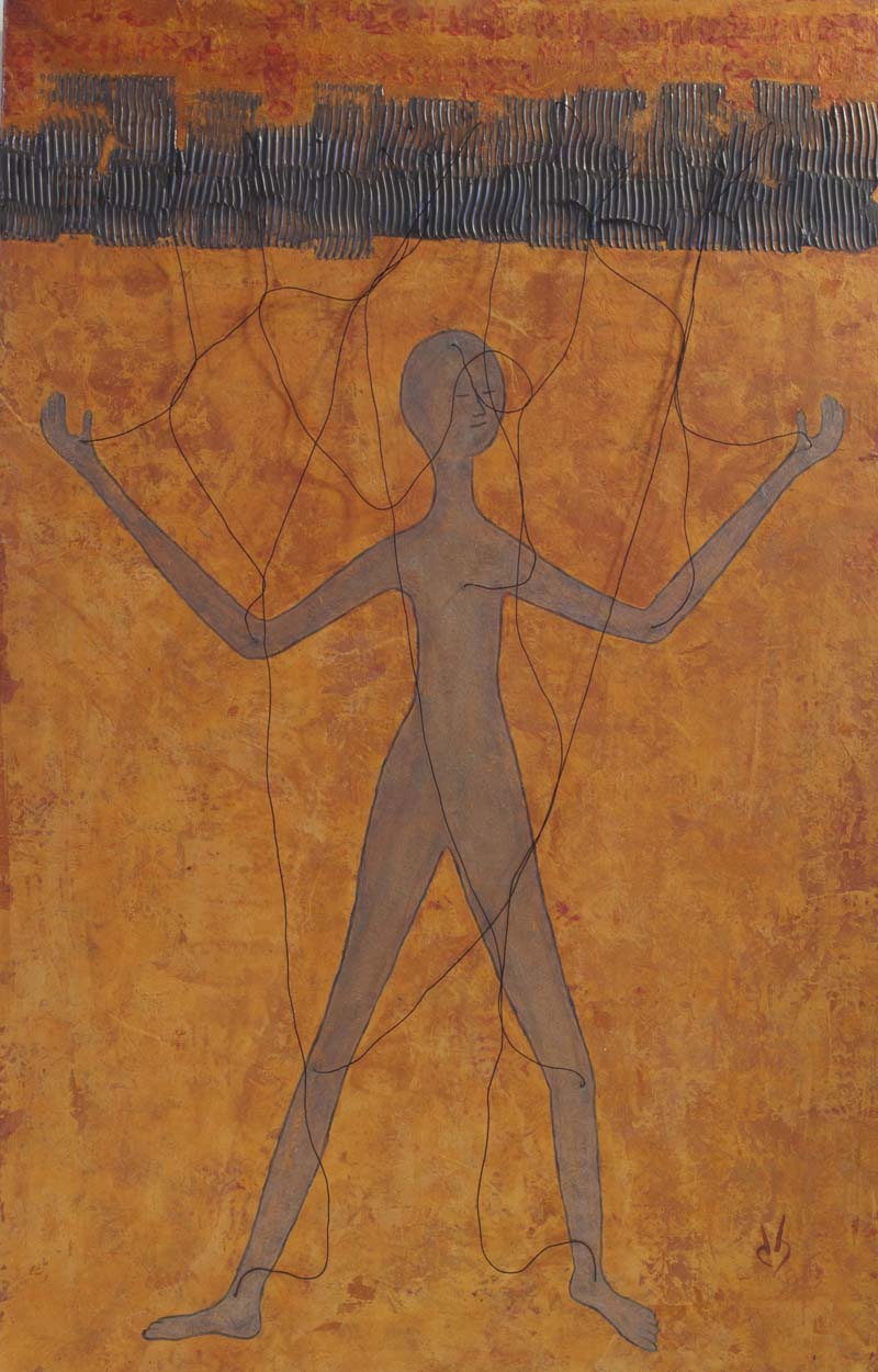 These works are done on handmade Nepali lokta paper, which I favor because it refuses to be a passive participant in the creation of a painting. It is kind of like the ground conditions of life that we must work with whether we like it or not.
